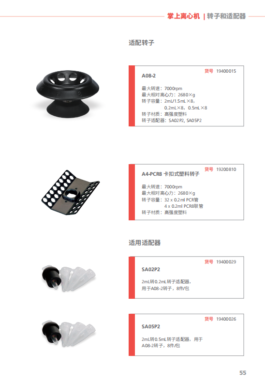 较大容量2ml x 8 离心管; 2 x 0.2ml PCR8排管,当与适配器联用时,亦可使用0.5ml或0.2ml离心管。