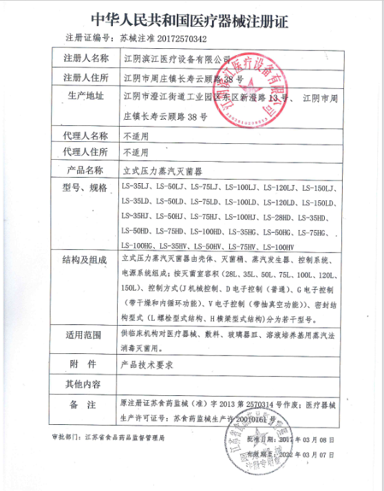 滨江医疗LS-35HD立式压力蒸汽灭菌器