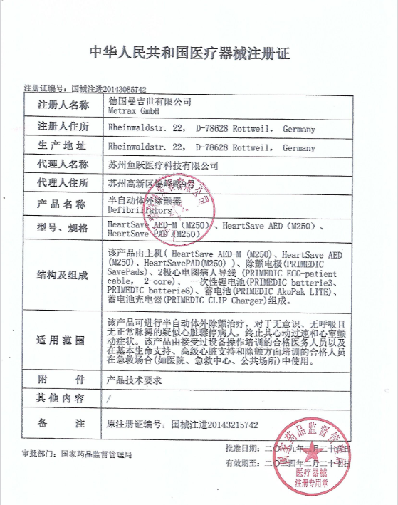 德国普美康 HeartSave PAD 自动体外除颤仪 技术参数: