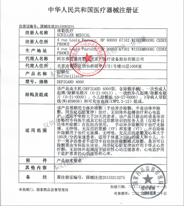 7.存储容量:可记录13h心电波形和1h20min心电声音记录和500个事件(工作时间、电击次数等)