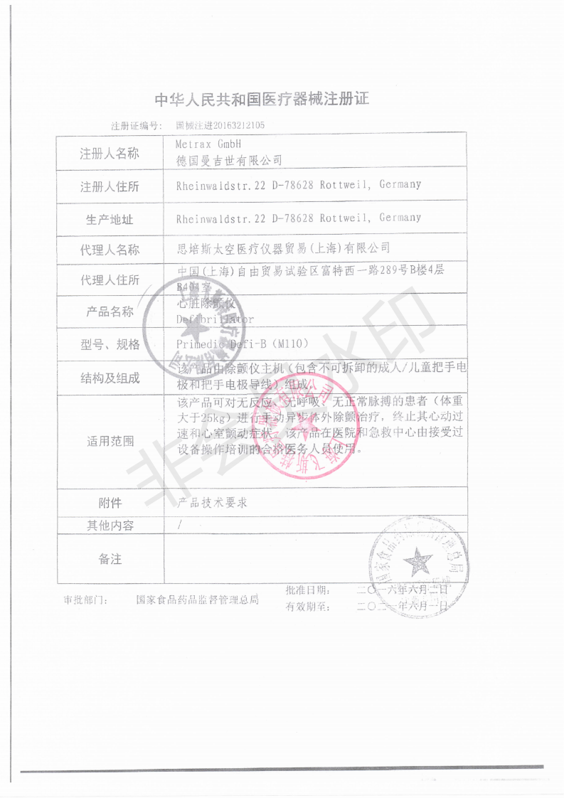 | 除颤类型: | 非同步除颤外部除颤治疗 |