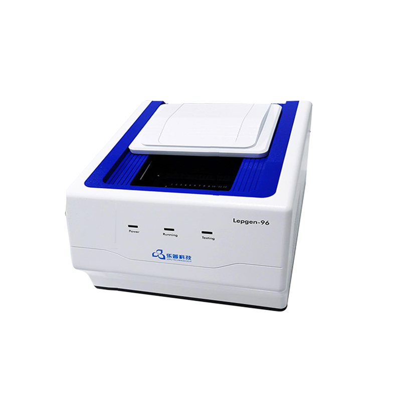 Lepgen-96荧光定量PCR仪基于聚合酶链式反应原理(PCR)和实时荧光监测技术,与配套的检测试剂共同使用,在临床上对来源于人体的核酸样本(DNA/RNA)中的被分析物进行定性、定量检测或溶解曲线检测,包括致病性病原体核酸和人类基因等项目。